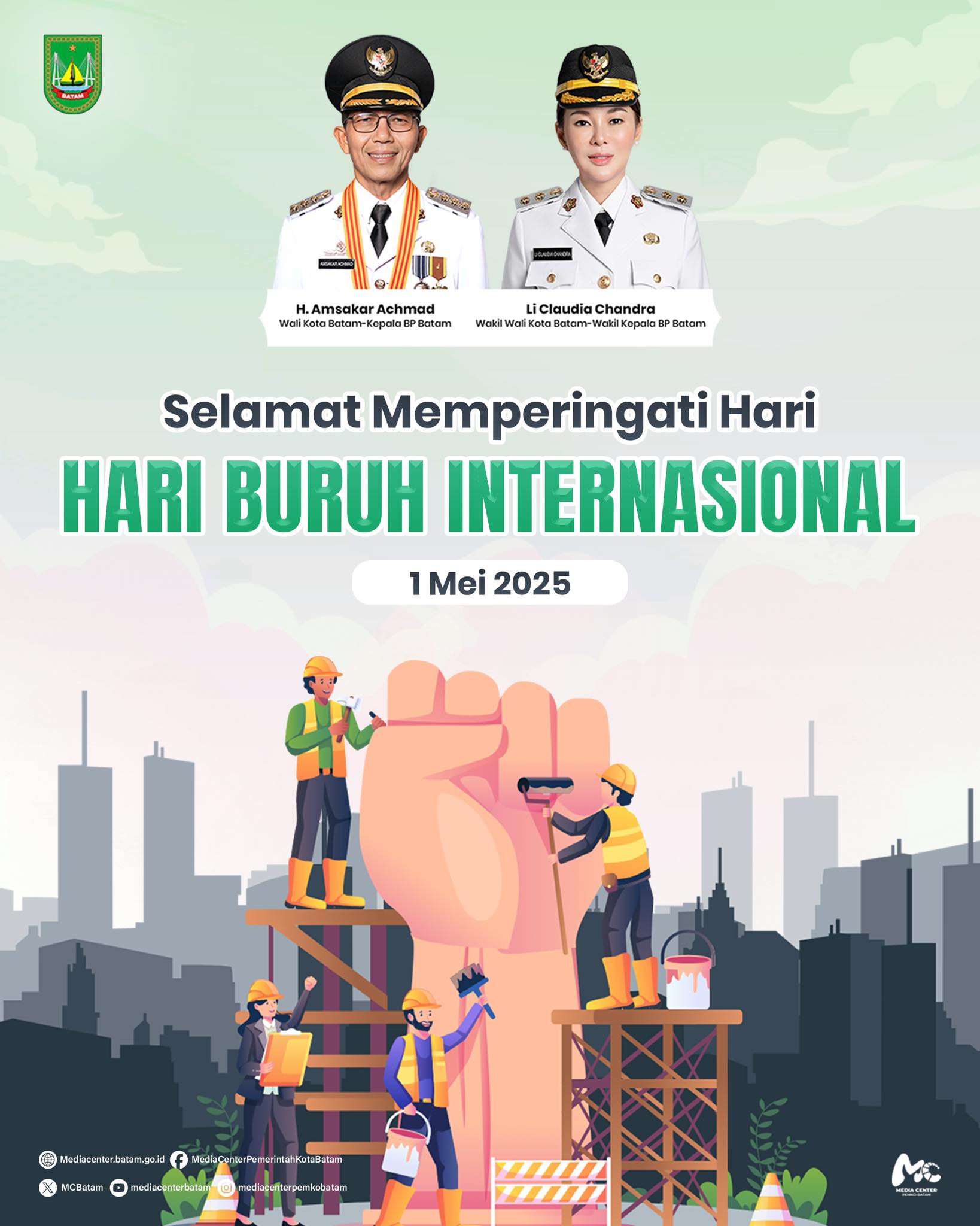 Pemerintah Kota Batam mengucapkan Selamat Hari Buruh Internasional kepada seluruh pekerja dan buruh, khususnya yang telah mendedikasikan tenaga dan pikirannya untuk kemajuan Kota Batam.