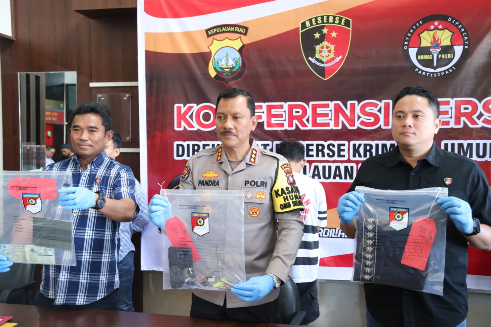 Batam, Tentangkepri.Com – Dalam kurun waktu 3 hari, 2 (dua) orang pelaku pencurian kendaraan bermotor (curanmor) berinisial EJS alias ED dan BS alias MZ berhasil diamankan Tim Opsnal Subdit 3 Jatanras Ditreskrimum Polda Kepri. Hal tersebut disampaikan oleh Kabidhumas Polda Kepri Kombes. Pol. Zahwani Pandra Arsyad, S.H., M.Si., didampingi Dirreskrimum Polda Kepri Kombes. Pol. Adip Rojikan, S.I.K., M.H., dan Kasubdit 3 Jatanras Ditreskrimum Polda Kepri Kompol Mikael Hutabarat, S.H., S.I.K., M.H., pada saat Konferensi Pers di Lobby Ditreskrimum Polda Kepri. Kamis (14/3/2024).