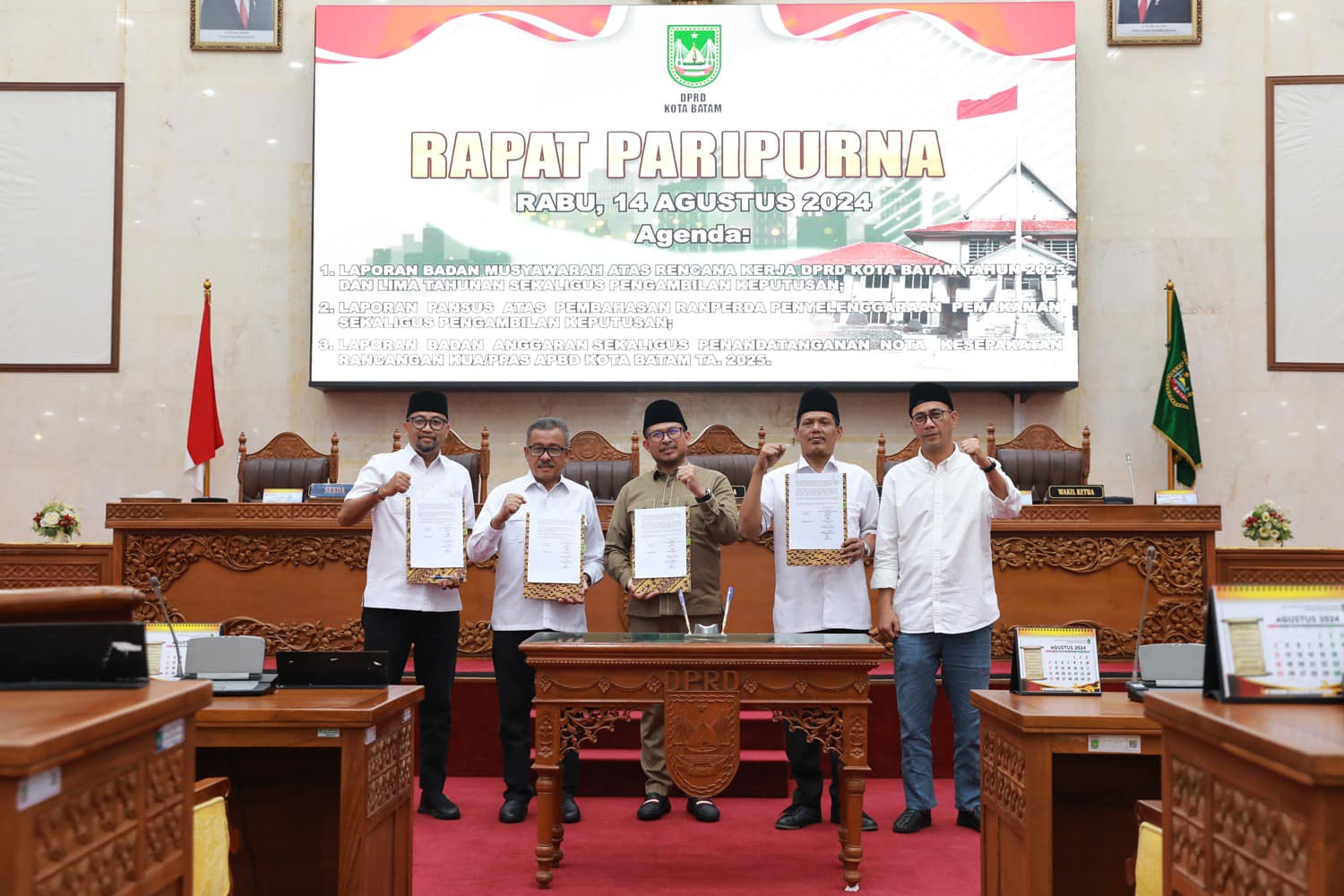 Disetujuinya APBD Kota Batam Tahun Anggaran 2025, ditandai dengan penandatanganan nota kesepakatan antara Wali Kota Batam dan Pimpinan DPRD Kota Batam.