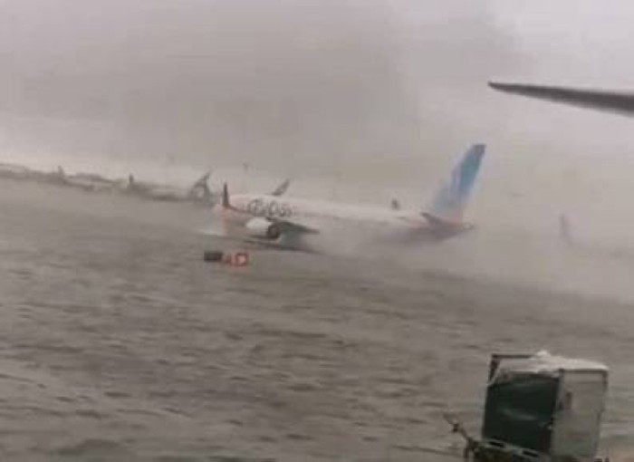 Flydubai, maskapai penerbangan yang berbasis di Dubai, mengumumkan gangguan dan pembatalan penerbangan akibat kondisi cuaca yang tak menentu. Terlihat pesawat-pesawatnya berhenti di tempat yang tidak semestinya. Landasan pacu tidak berfungsi.