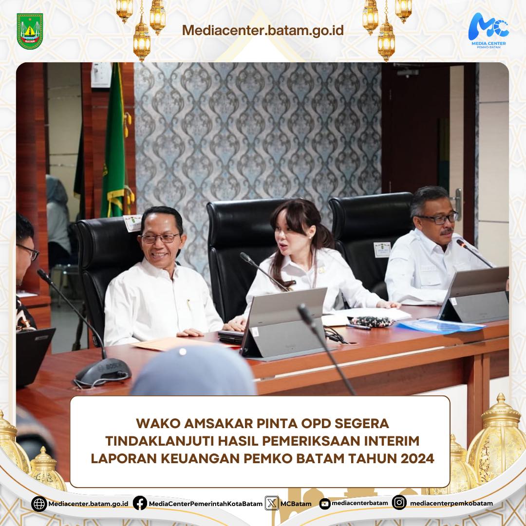 “Terimakasih kepada Tim BPK RI Perwakilan Provinsi Kepri yang telah melakukan Pemeriksaan Interim atas Laporan Keuangan Pemerintah Kota Batam Tahun 2024. Saya minta SKPD segera follow up dan lakukan klarifikasi terhadap temuan yang ada di dinas Bapak/Ibu,” pintanya.