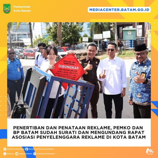“Bahwa untuk penyelenggaraan reklame yang tertib, saat ini Pemerintah Kota Batam dalam tahap penyelesaian rancangan Peraturan Wali Kota Tentang Penyelenggaraan Reklame yang baru,” jelasnya.