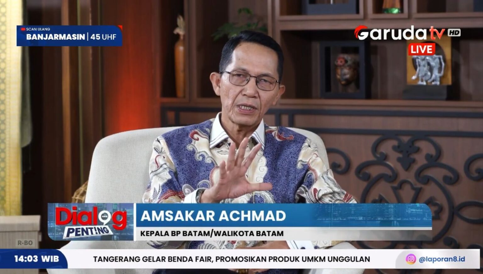 BATAM, TENTANGKEPRI.COM – Batam terus memperkuat diri sebagai pusat investasi nasional yang terhubung dengan pasar dunia. Hal tersebut disampaikan Wali Kota sekaligus Kepala Badan Pengusahaan (BP) Batam, Amsakar Achmad, dalam program Dialog Penting di GarudaTV yang menyoroti kemajuan pesat ekosistem investasi di Kota Batam.
