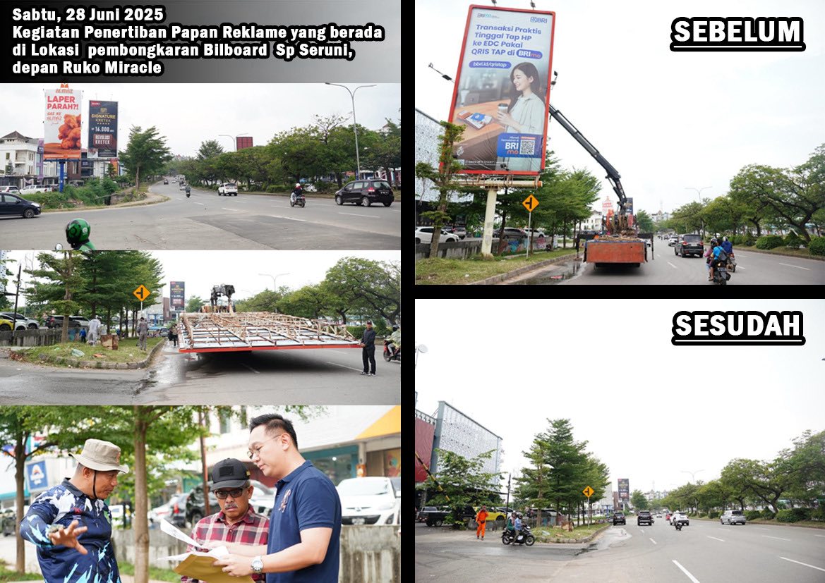“Atas nama pimpinan, Saya mengucapkan terimakasih kepada seluruh tim yang terlibat sehingga progress reklame yang ditertibkan terus bertambah setiap harinya. Dari hasil penertiban ini di lapangan pada titik-titik yang sudah ditertibkan adanya perubahan terhadap keindahan Kota Batam, lebih rapi,” ujarnya Senin (30/06/2025).